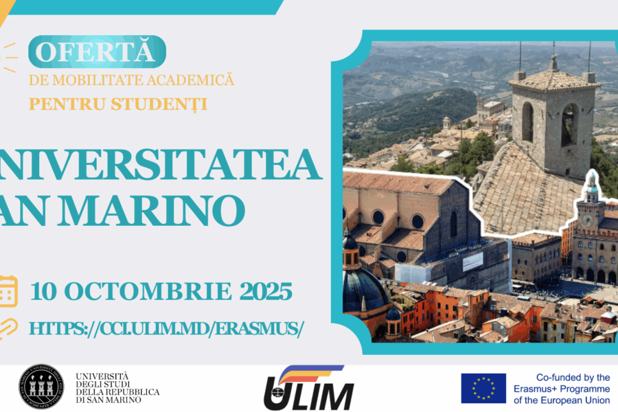 Universitatea Liberă Internațională din Moldova anunță organizarea concursului de selecție a candidaților pentru mobilitate academică la instituția parteneră Erasmus+ University of San Marino (Università degli Studi della…