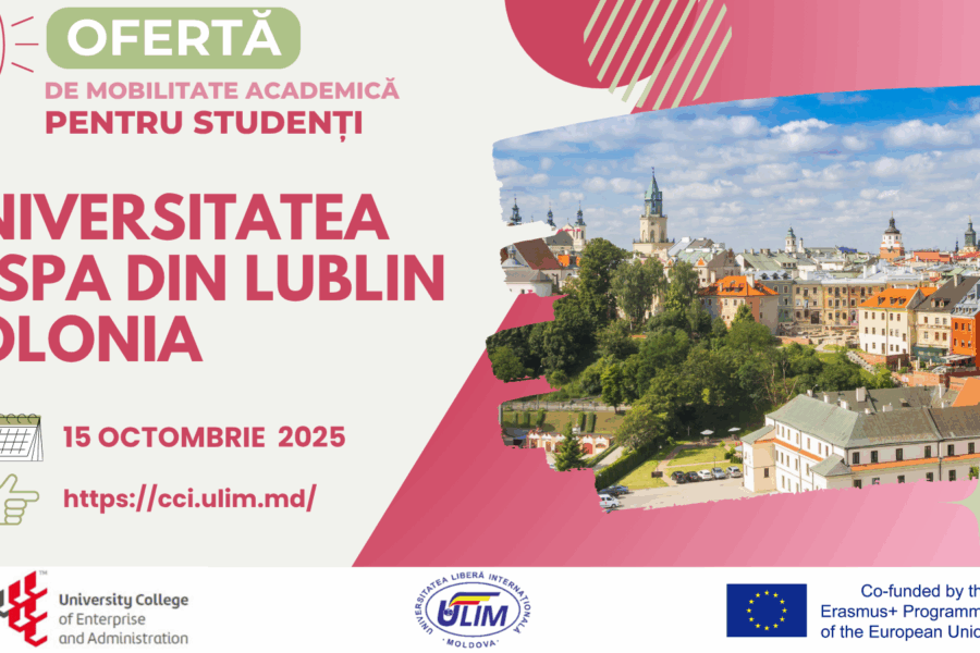Universitatea Liberă Internațională din Moldova anunță organizarea concursului de selecție a candidaților pentru mobilitate academică la instituția parteneră Erasmus+ 𝐔𝐧𝐢𝐯𝐞𝐫𝐬𝐢𝐭𝐚𝐭𝐞𝐚 𝐖𝐒𝐏𝐀 𝐝𝐢𝐧 𝐋𝐮𝐛𝐥𝐢𝐧 care oferă burse de…