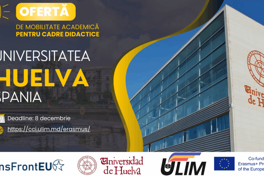 Universitatea Liberă Internațională din Moldova anunță lansarea concursului de selecție pentru mobilitatea academică la instituția parteneră Erasmus+ – Universitatea Huelva (UHU) din Spania, în cadrul…